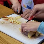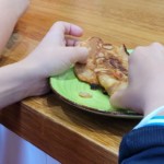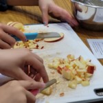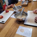 Nun tauschten die Gruppen, damit auch die anderen Klassenkameraden ihre Apfelpfannkuchen zubereiten konnten.