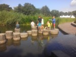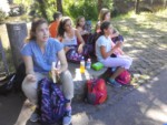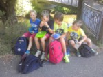Aber dann mussten wir gehen. Wir liefen ganz lange bis zur Günther-Klotz-Anlage. Dazwischen machten wir eine Pause an einer Wasserstelle und spritzten uns gegenseitig nass. Nach der erfrischenden Pause machten wir uns auf den Weg zum Spielplatz an der Alb.