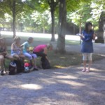 Wir sind zum Schloss gelaufen. Dort haben wir im Schlossgarten gevespert und ein paar Klassenfotos gemacht.
