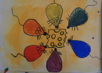Zwei Wochen lang war im Unterricht aller Grundschulklassen der Fokus aufs Lesen gerichtet. Es gab einen Lesewettbewerb und jede Lehrkraft stellte ihr Lieblingsbuch vor. Kinder der dritten und ersten Klassenstufe fanden sich zum Märchen lesen und hören zusammen und entdeckten den Erzählthron. Die vierten Klassen sammelten über 700€ beim „Lesen für Unicef“. Aber auch in Kunst und Werken oder Musik ging es – ganz dem Mäusebeispiel folgend- um Farben, Wörter, um immaterielle Werte, die das Leben reicher machen.