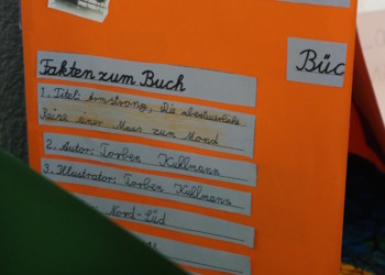 Am letzten Schultag vor den Herbstferien präsentierten die Schüler ihre Ergebnisse. Kindergartenkinder von Sankt Georg und der Kronenstraße, aber auch Elternvertreter waren Gäste in der Schulversammlung in der Aula. Bunt und vielfältig ging es da zu. Französische Lieder, ein Farbenlied und der Chor sorgten für Rhythmus und Schwung. Der Wind erklang vielfältig im Gedicht und in den dazu passenden Orffinstrumenten. In einer kleinen Ausstellung konnten Lapbooks zu Mäusebüchern, Mäusefarbkreise und selbstgefertigte Bücher vom „Alten Zauberer Farbenfroh“ bewundert werden. Ein fröhlicher und gelungener Auftakt in den Herbst. Wieder einmal war die Richard-Hecht -Grundschule bunt und gemeinsam unterwegs.