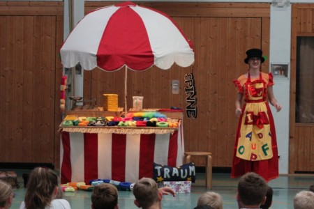 Am 11.07.2017 gab es einen ganz besonderen Markt in der Richard-Hecht-Schule, denn es wurde das Theaterstück „Die Händlerin der Worte“ des Theaters Nimmerland aufgeführt. Wir durften sogar beim Auf- und Abbau helfen.