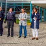 Auf Initiative von Frau Jahnke schloss sich die Schule der Aktion „Zu Fuß zur Schule“ des VCD (Verkehrsclub Deutschland e.V.) an. So eröffnete am 19. September das Schulleitungsteam die Aktionstage. Mit dabei waren dankenswerterweise zwei Vertreterinnen des Polizeiposten Blankenloch, Herr Hoffmann vom Ordnungsamt und Elternbeiratsvorsitzender Herr Linker. In den folgenden Tagen thematisierten die Lehrkräfte mit den Kindern die Gedanken hinter der Aktion. in den ersten Klassen fand gezieltes Verkehrstraining statt und im Schulhaus fanden sich immer mehr bunte und beschriftete Fußspuren zur Aktion. Buttons wurden getragen und die Anzahl der Tage, an denen man zu Fuß kam wurde festgehalten.